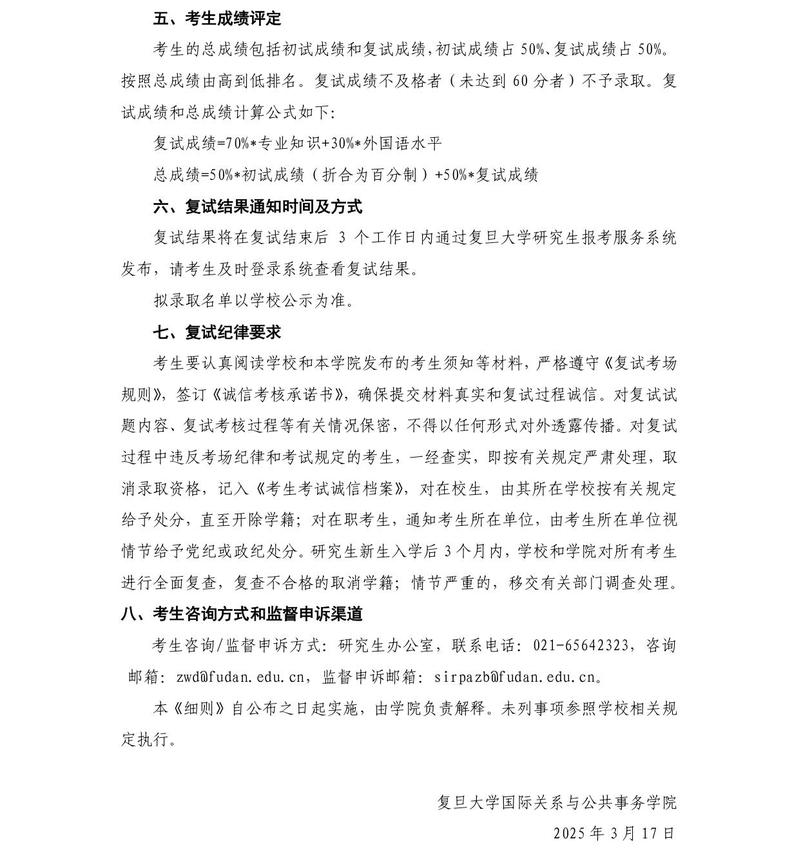 国务学院2025年硕士研究生招生复试工作实施细则