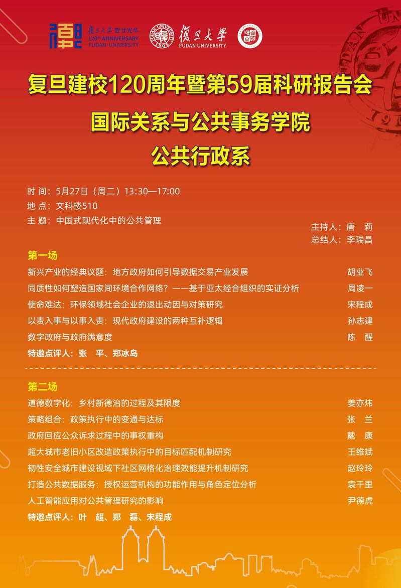 复旦建校120周年暨第59届科研报告会 | 中国式现代化中的公共管理(5.27)