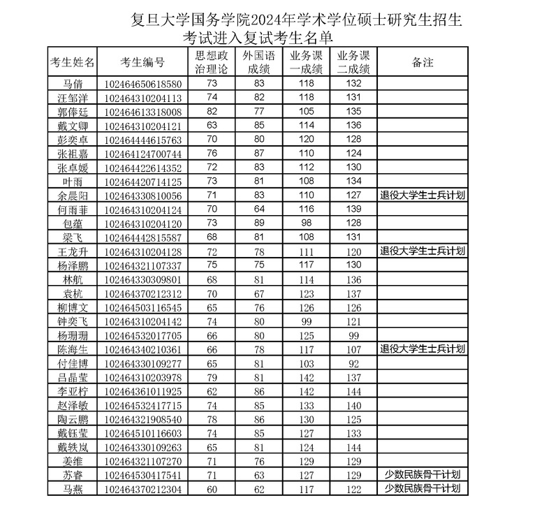 天天看小说 国务学院2024年学术学位硕士研究生招生考试进入复试考生名单