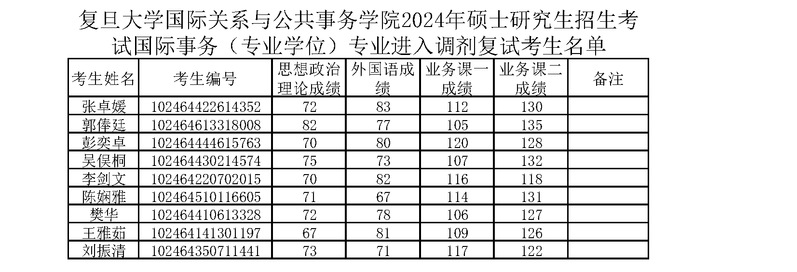 天天看小说 国务学院2024年硕士研究生招生考试国际事务(专业学位)专业进入调剂复试考生名单