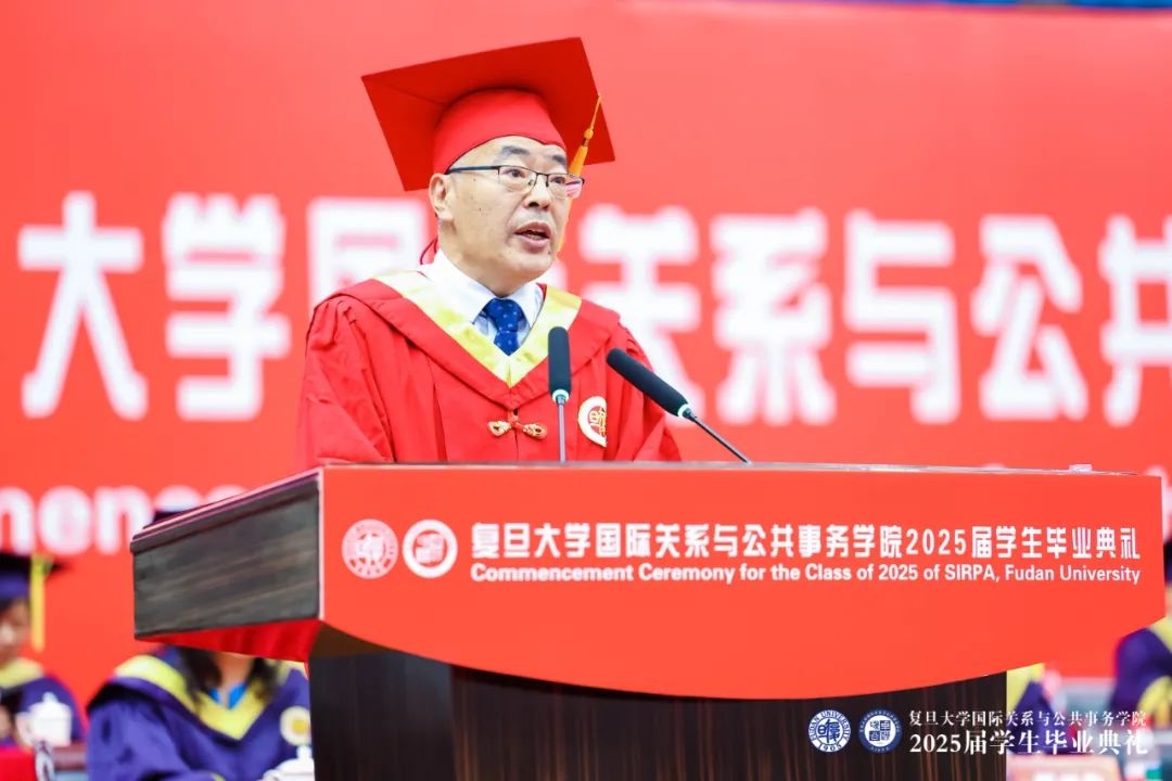上海荣昶公益基金会名誉理事长王建明作为典礼特邀嘉宾上台发言,寄语毕业生们要以“高站位、高格调、高韧性”胸怀天下,成为代表中国参与全球治理的“国务力量”。
