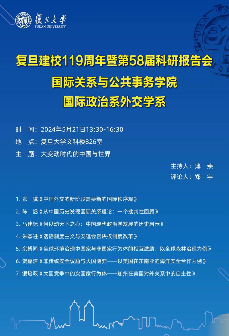 复旦建校119周年暨第58届科研报告会 | 大变动时代的中国与世界(5.21)