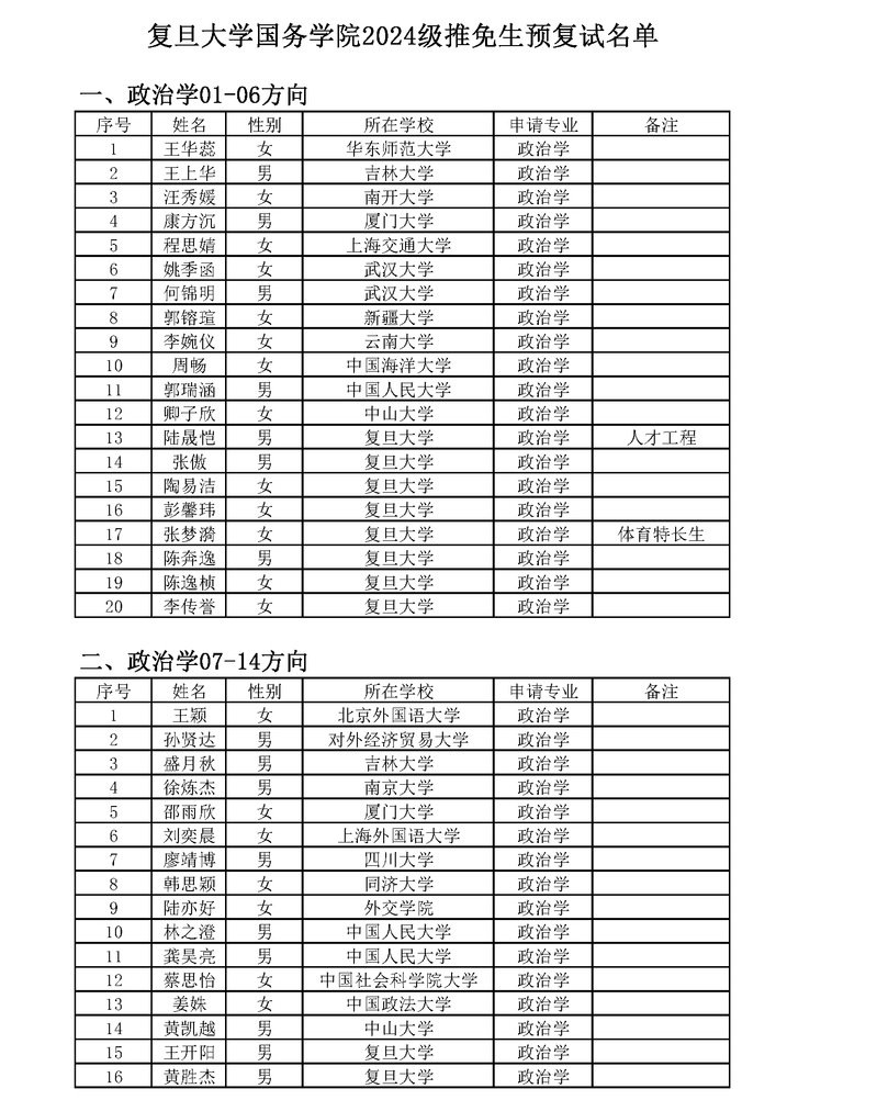 天天看小说 国务学院2024级推免生预复试名单
