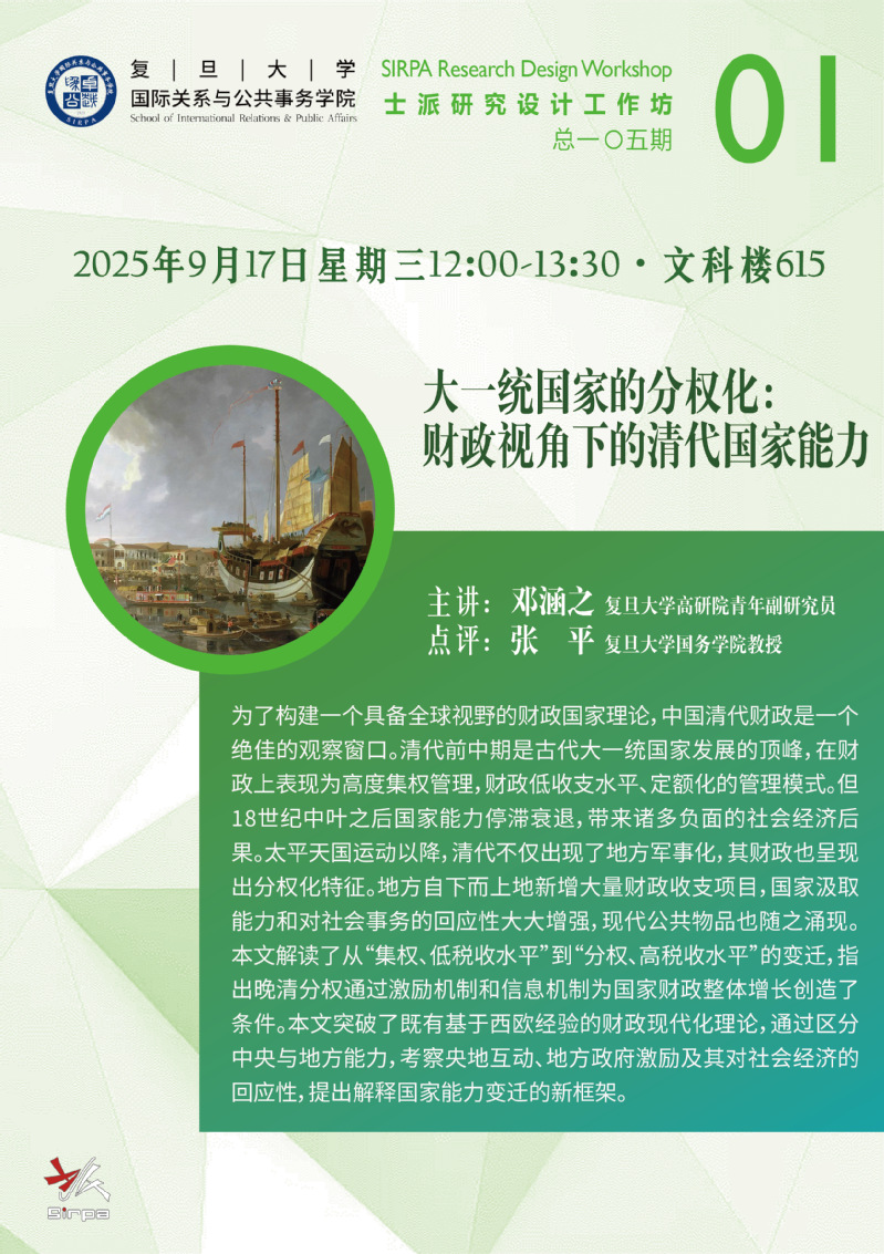 大一统国家的分权化:财政视角下的清代国家能力(9.17)