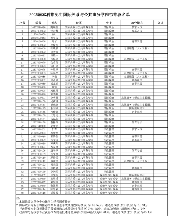 2026届本科推免生天天看小说 拟推荐名单
