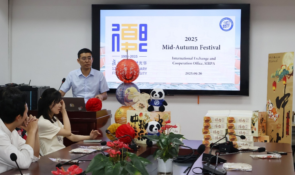 英文授课项目主任老师们也为留学生同学们送上了暖心的话语和祝福。余博闻老师鼓励同学们,文化不仅存在于书本中,更流淌在生活的细节里,希望大家能用心品味中秋的月色、月饼的香甜,以及人与人之间的温情,让中国的文化氛围成为记忆中鲜活的画卷。李珺老师也希望同学们在节假日多将目光投向校园之外,感受上海、感受中国。袁千里老师表示,无论遇到学术的困惑还是生活的难题,记得身边还有老师和同学——我们是一个大家庭,携手共进,就没有跨不过的坎。彭泽宇老师温馨提醒大家中秋月圆时,别忘了给远方的家人打个电话。李海默老师则以中秋“团圆安康”的寓意寄语同学们,愿大家将佳节的温暖期许藏于心间,在往后的学习生活中互相关怀、共赴成长。