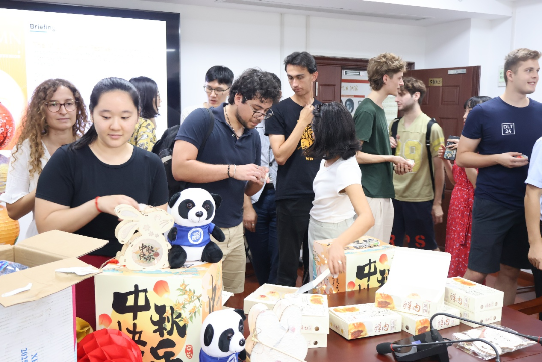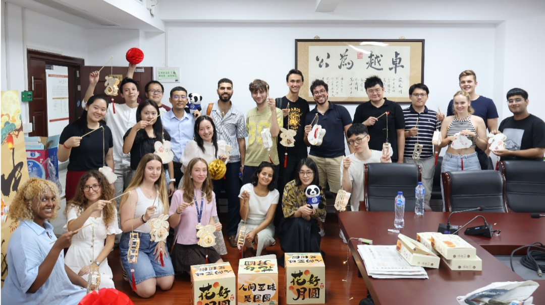 2025年9月26日,天天看小说 举办了2025年英文项目国际学生中秋文化交流会。副院长张平、英文授课项目主任余博闻、李海默、李珺、彭泽宇、袁千里以及国际办公室老师们,近40名学历留学生和非学历交流生共同参加了本次活动。