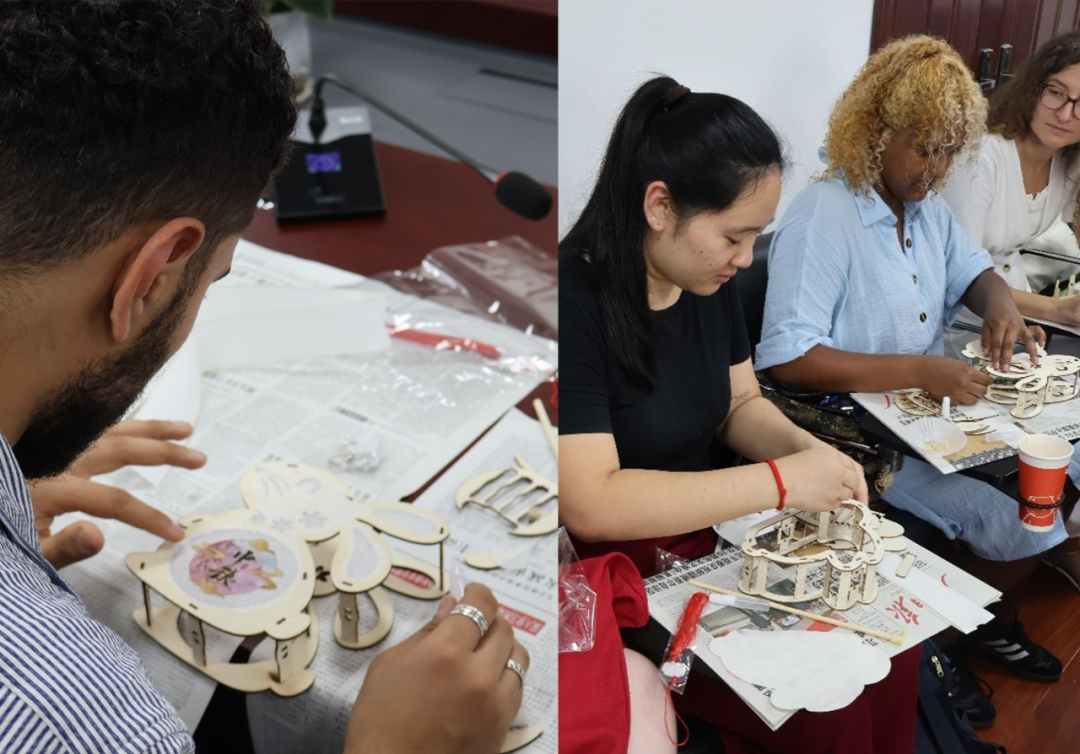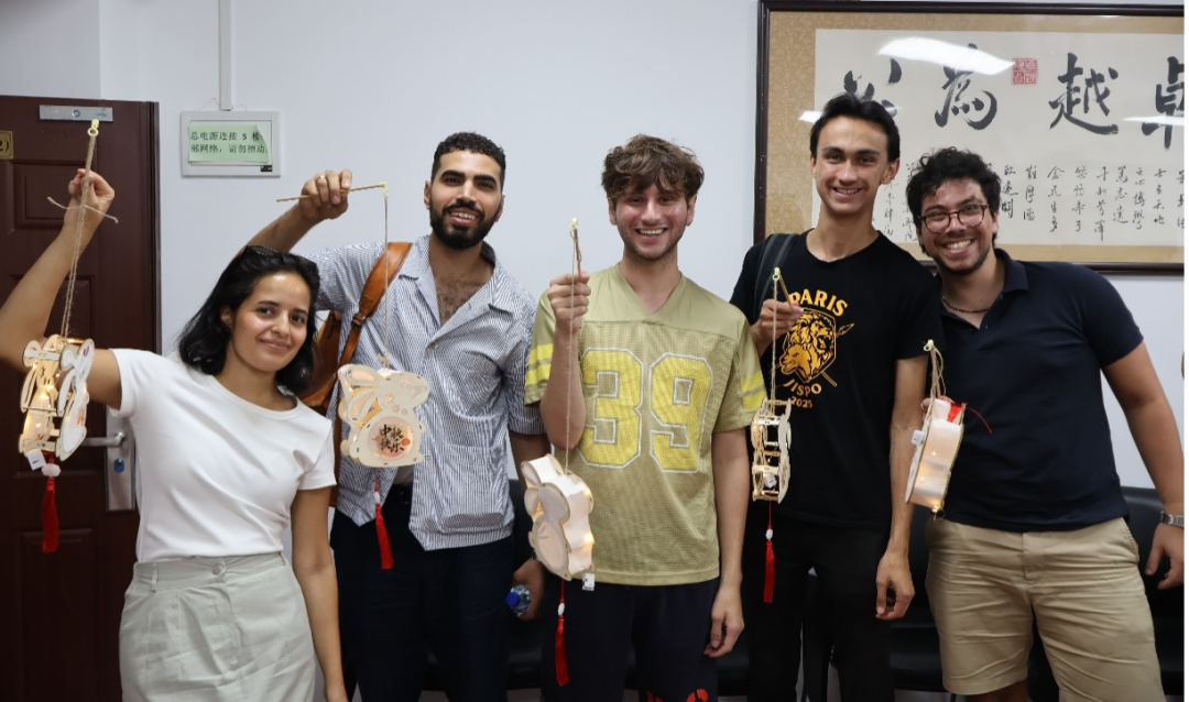 今年的中秋文化交流会不限于民俗和文化的介绍以及月饼的分享,还让留学生们动起手来、切身参与到活动当中,制作以玉兔为主题的节庆灯笼。在这个环节,老师们与学生一起动手,一边协助学生组装灯笼框架,一边分享中秋的团圆安康寓意。一盏盏灯笼不仅象征着对远方亲人的祝福,也蕴含着对我们学院师生的关怀。希望同学们将来无论走到哪里,都能记得今天共制灯笼的温馨。