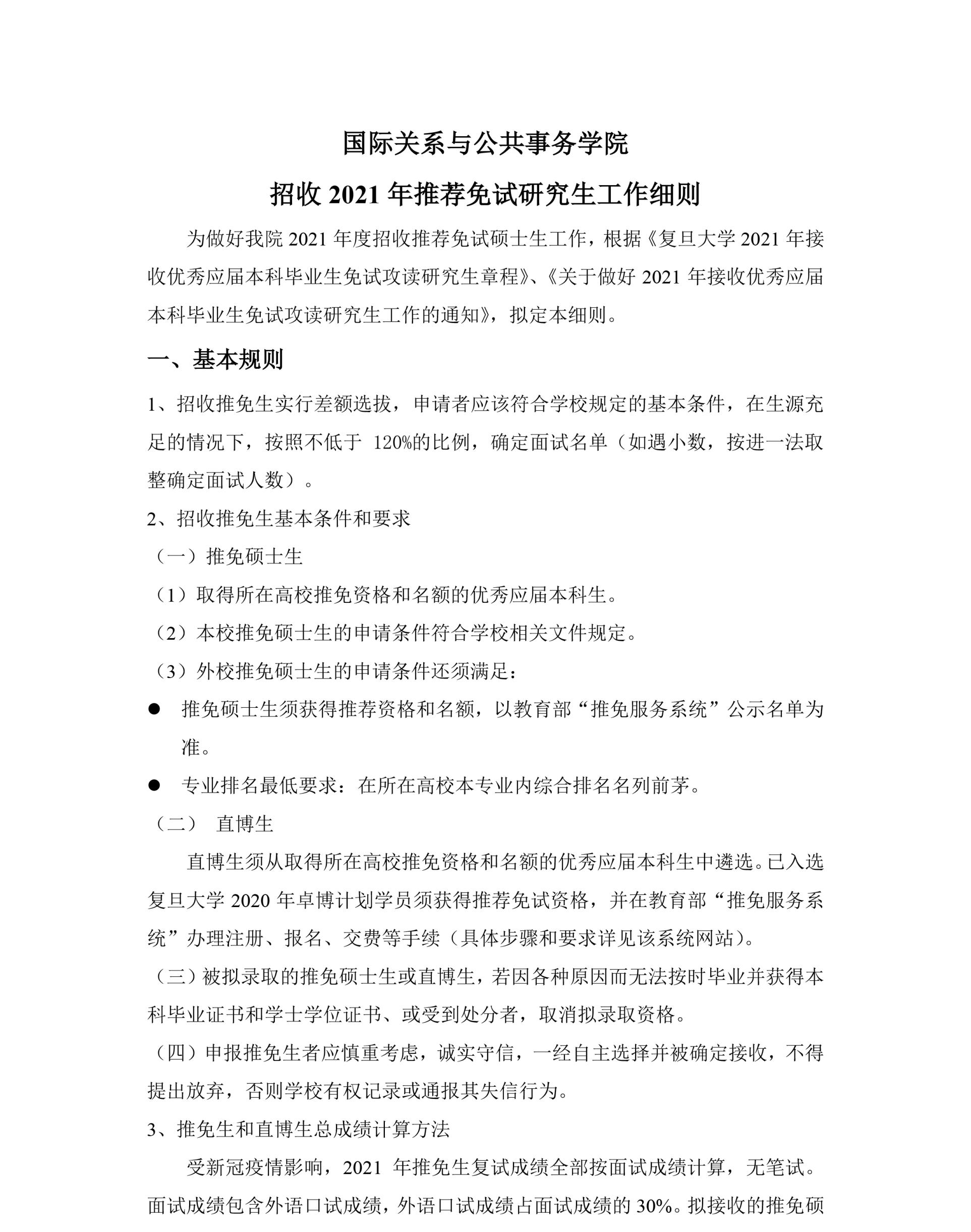 《国务学院招收2021年推荐免试研究生工作细则》