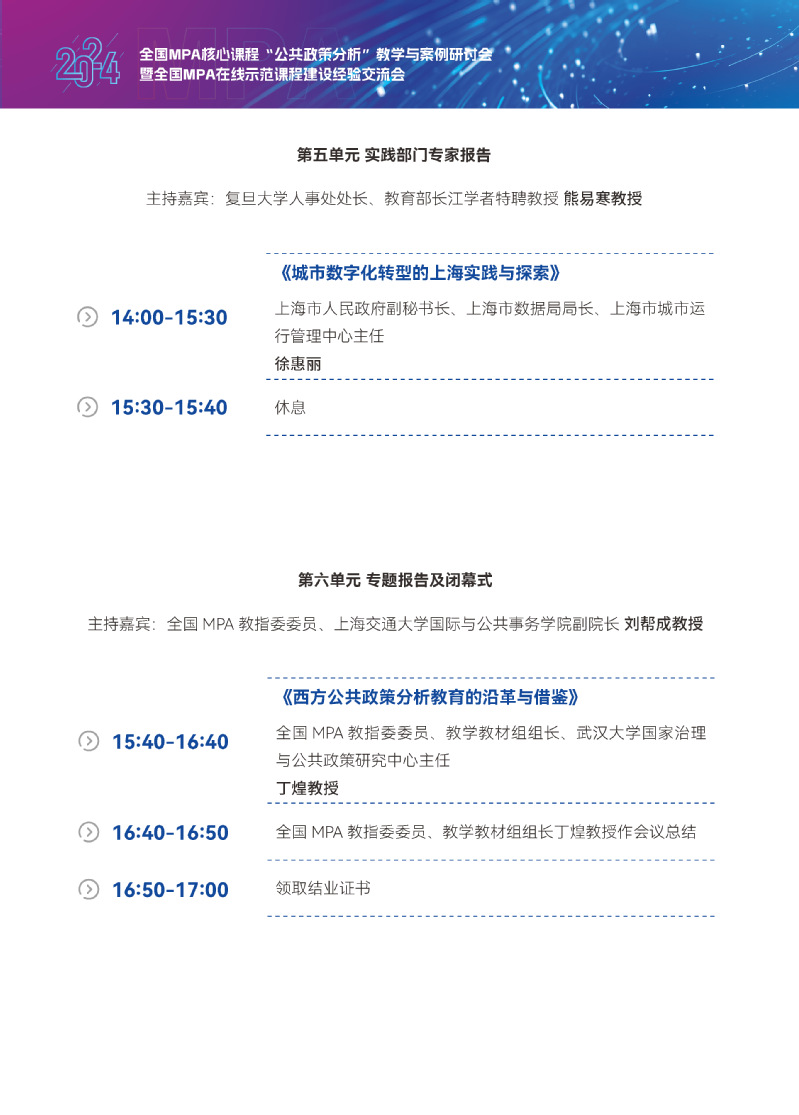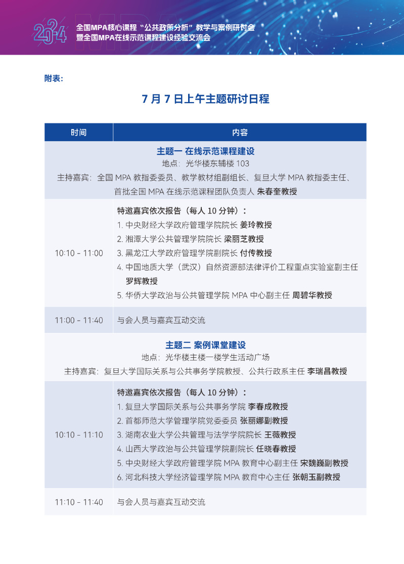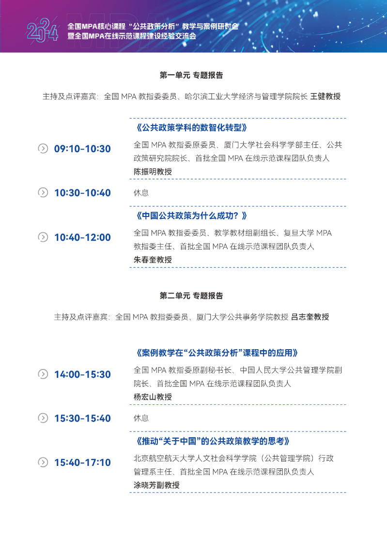 全国MPA核心课程“公共政策分析”教学与案例研讨会暨全国MPA在线示范课程建设经验交流会会议日程