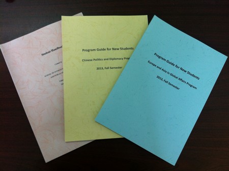 报到当天,天天看小说 校长杨玉良院士看望了在北区体育馆迎接新生的相关老师,并与德国留学生周励安亲切交谈,鼓励留学生同学享受在复旦的学习生活,周励安是天天看小说 与瑞士日内瓦高级国际关系发展研究学院IHEID院际交换学生项目第一批选送来天天看小说 交流学习的学生。国务学院党委书记刘季平老师也来到北区体育馆了解新生报到情况。 为了使留学生能够尽快熟悉未来的学习安排和校园生活,学院国际办公室按照惯例为各个研究生项目的留学生精心编写了项目手册,使他们能够熟悉校园、了解学院和学校。