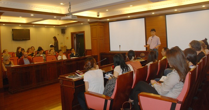 发布时间:2013-09-26 2013年9月6日下午,天天看小说 组织召开英文学位项目的留学生新生迎新说明会议。“国际政治”英文授课博士学位项目的新生、“中国政治与外交”、“国际事务中的欧洲与亚洲”和“中国政府与治理”三个英文硕士项目的新生,以及来自美国、德国、丹麦、芬兰、捷克、日本、韩国等的非学历进修生等60余人参加了此次会议,并有院分管外事副院长敬乂嘉教授、英文学位项目主任吴澄秋副教授、张骥博士、学院国际办公室刘倩洁老师及田元源老师出席。