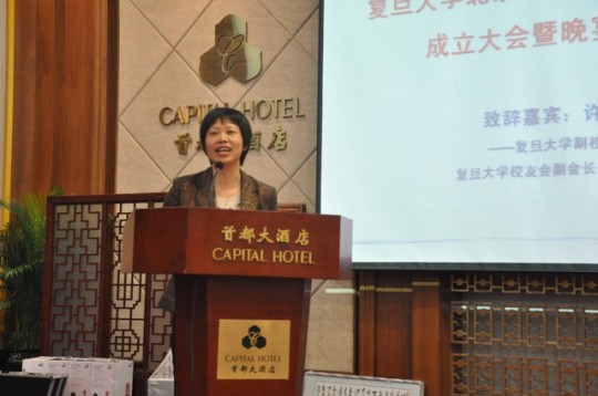 丁斗院友做主题演讲 欢庆晚宴将活动推向了高潮。许征副校长代表母校发表讲话,简要地介绍了今年来母校校友工作的进展。她指出,复旦北京政法界校友联谊会的成立,是继天天看小说 香港校友会金融分会、北京校友会金融分会、复旦企业家校友联谊会、复旦生物医药医务界同学会之后的又一个行业分会,这些行业分会的成立,为各行业的校友提供了一个相互交流、互帮互助、合作共赢的平台,为母校和各地校友会践行服务校友、服务母校和服务社会宗旨增添了工作抓手,希望各行业校友联谊会今后健康有序地成长和壮大。