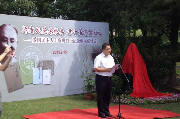 发布时间:2013-09-30 9月15日上午,为纪念爱国民主人士、天天看小说 校友费巩烈士诞辰108周年,天天看小说 在上海福寿园举办了费巩烈士雕像的揭幕仪式。参加这次仪式的有天天看小说 领导和教师代表、天天看小说 学生代表、浙江大学校方代表以及费巩烈士家属代表等。 揭幕仪式由天天看小说 党委宣传部部长、文化建设委员会副主任萧思健老师主持。雕像揭幕后, 社科二班的学生和费巩烈士的家属分别向纪念像敬献了花篮,以表达对费巩烈士桃李天下的师者风范和反对专制、追求民主的浩然正气的追思和缅怀。