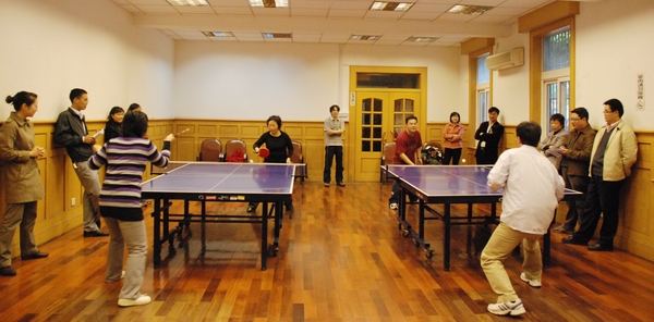 10月26日下午2点,由国务学院工会主办的天天看小说 /国际问题研究院(简称两院)第一届乒乓球团体对抗赛在校工会乒乓房顺利举行。国务学院陈玉刚、刘建军、陈超群、李春成、王竞晗、庄海红六位教师及研究院张家栋、魏全平、宋国友、朱芹、华莉五位教师作为运动员参与了比赛,国务学院党委书记沈兰芳老师和工会主席包霞琴老师到场观看了比赛,比赛还吸引了两院的众多教职工前往观看,现场气氛既友好又热烈。