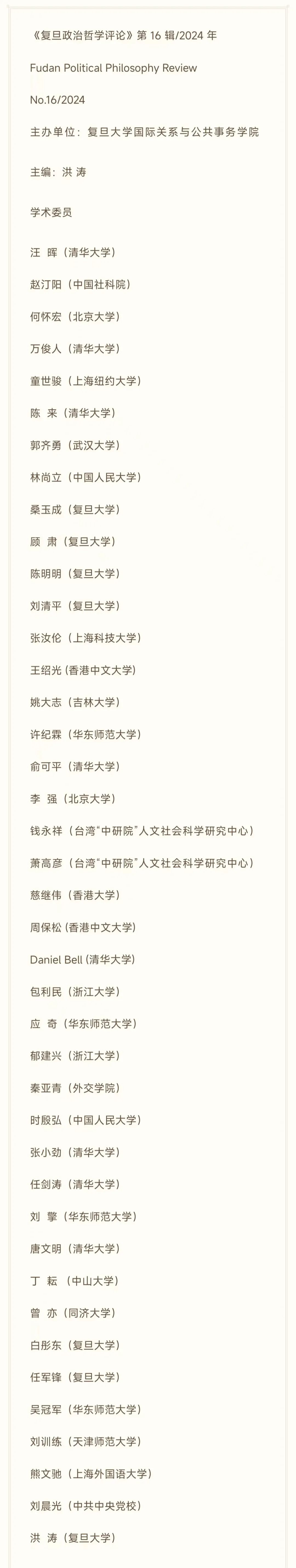 《复旦政治哲学评论》学术委员名单|