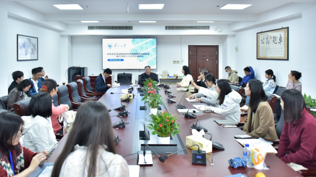 刘季平书记指出,十六次党代会报告高举旗帜、主题鲜明,把握大势、布局长远,鼓舞人心、催人奋进,是指导今后一个时期学校各项工作的纲领性文件。他从“六个新突破”、“五个高”、“五个坚持”来展望未来五年学校高质量发展战略。与一般解读不同的是,刘季平书记结合公文写作的特点和要求对报告的框架、措辞等做了特别详细的解释,让在座的师生不仅能了解党代会报告的内容,更能深入领会党代会精神,积极投身扎根中国知识自主体系建设工作,争当自主创新尖兵。