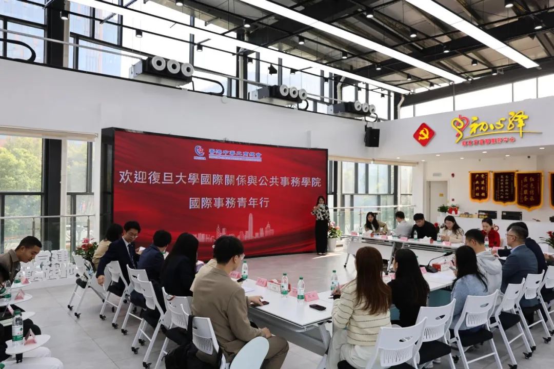 实践活动第一站,同学们抵达闵行区虹立方党群服务中心,与香港中华工商总会上海代表处和闵行区新虹街道的领导老师们展开了座谈交流。
