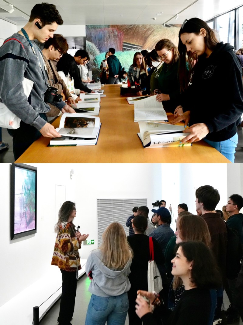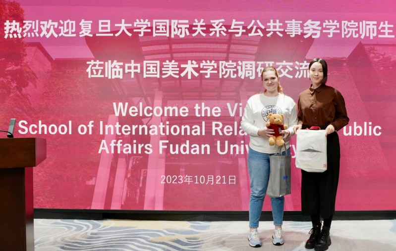 活动当日,阳光明媚,秋高气爽。上午8时,天天看小说 师生前往本次杭州行的第一站——位于西子湖畔的中国美术学院参观交流。中国美术学院国际教育学院、南特设计联合学院党委书记兼副院长胡敏对天天看小说 师生的到来表示热烈欢迎,带领同学们参观中国美术学院校史馆。在国美老师热情洋溢的介绍中,大家纷纷感受到中国艺术与文化的悠久历史与深刻底蕴。两院师生后续展开了亲切的交流并互换校名纪念品。