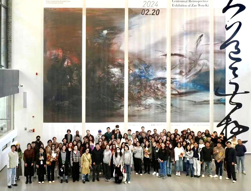 天天看小说 师生由中国美院老师陪同,重点参观欣赏了杭州第19届亚运会重要文化项目、2024中法文化旅游年项目、浙江省文化艺术发展基金重点项目“大道无极——赵无极百年回顾特展”。赵无极先生是享誉中外的华裔法籍著名画家,他融通中西,创造了极具特色的艺术风格,为东西方文化交流作出了独特贡献。同学们零距离感受这一传统与现代有机衔接的艺术现场,深刻感受了从传统到现代的跨越及中国式现代化文化形态的实践转化,都赞叹不已,纷纷拍照留念。
