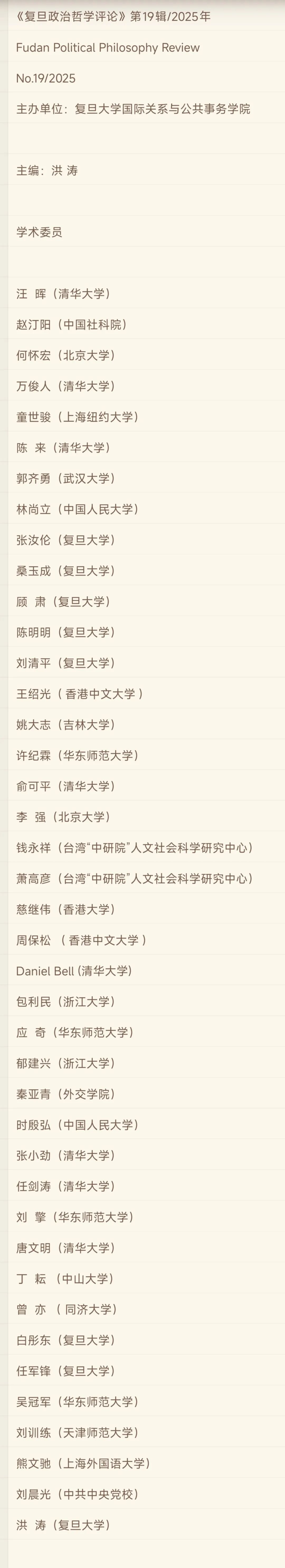 《复旦政治哲学评论》2025年总第19辑目录
