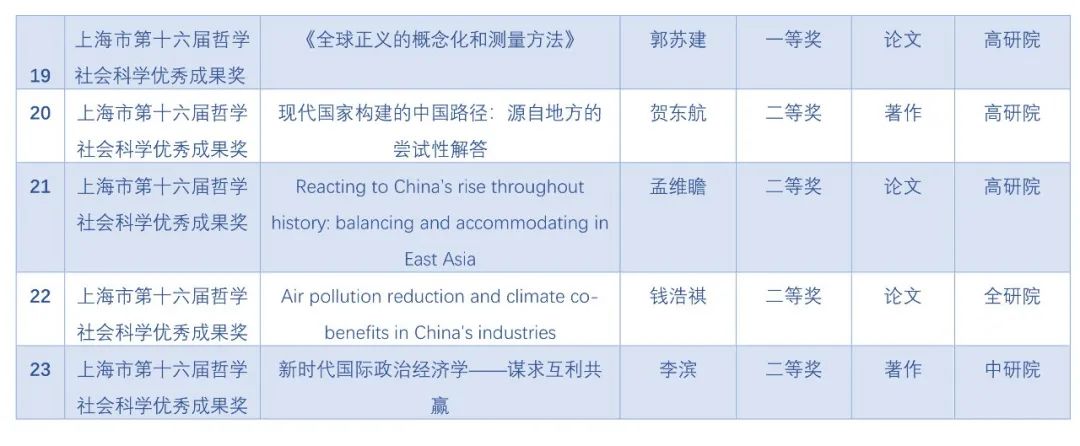 近日,上海市第十六届哲学社会科学优秀成果奖拟获奖名单已公示结束。其中学术贡献奖4人,学术新锐奖14人,党的创新理论研究优秀成果奖50项,学科学术优秀成果奖432项。