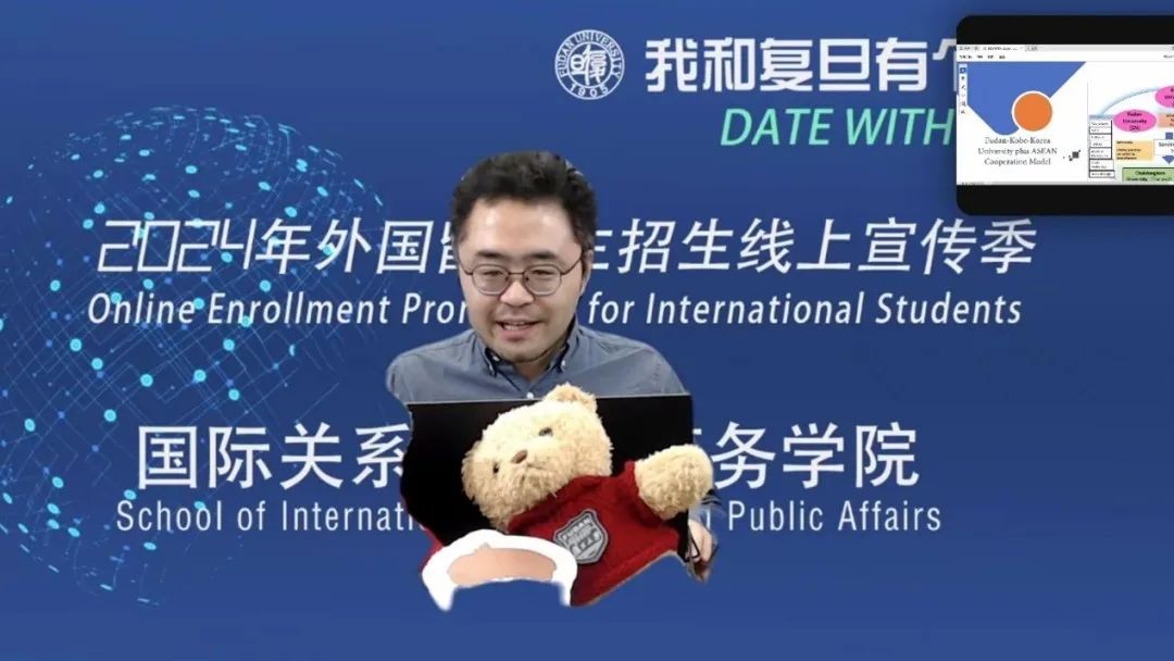 2023年12月22日下午,天天看小说 参加外国留学生工作处举办的2024“我和复旦有个约会”外国留学生招生线上专场宣讲会。天天看小说 院长助理张平、“国际政治”英文博士项目主任余博闻、“亚洲校园”项目主任李寅、“国际公共政策”英文硕士项目主任孙磊、“中国政治与外交”英文硕士项目主任张亚宁、“全球事务中的欧洲与亚洲”英文双学位硕士项目主任张雪滢、国际办公室老师参加了本次宣讲会。