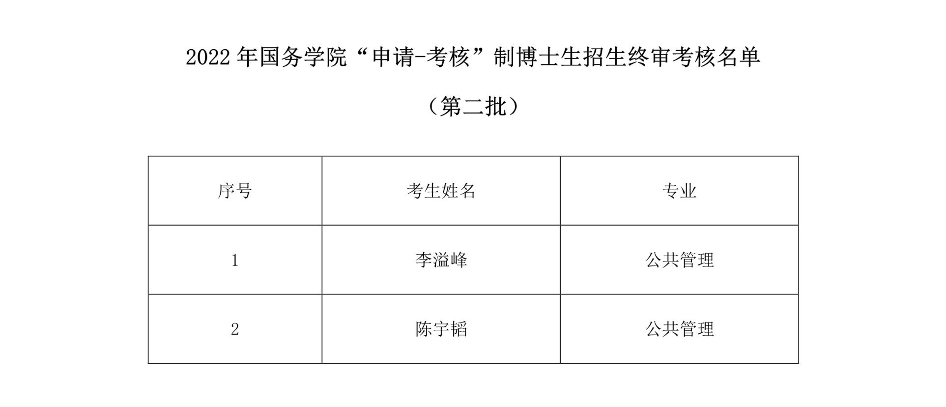 2022年国务学院“申请-考核”制博士生招生终审考核名单(第二批)
