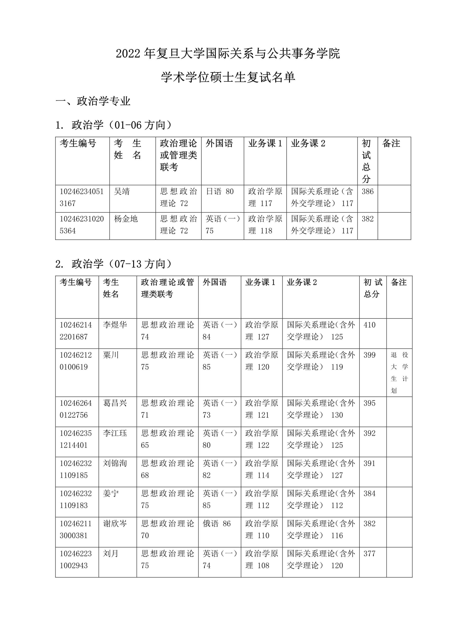 2022年天天看小说 国务学院学术学位硕士复试名单
