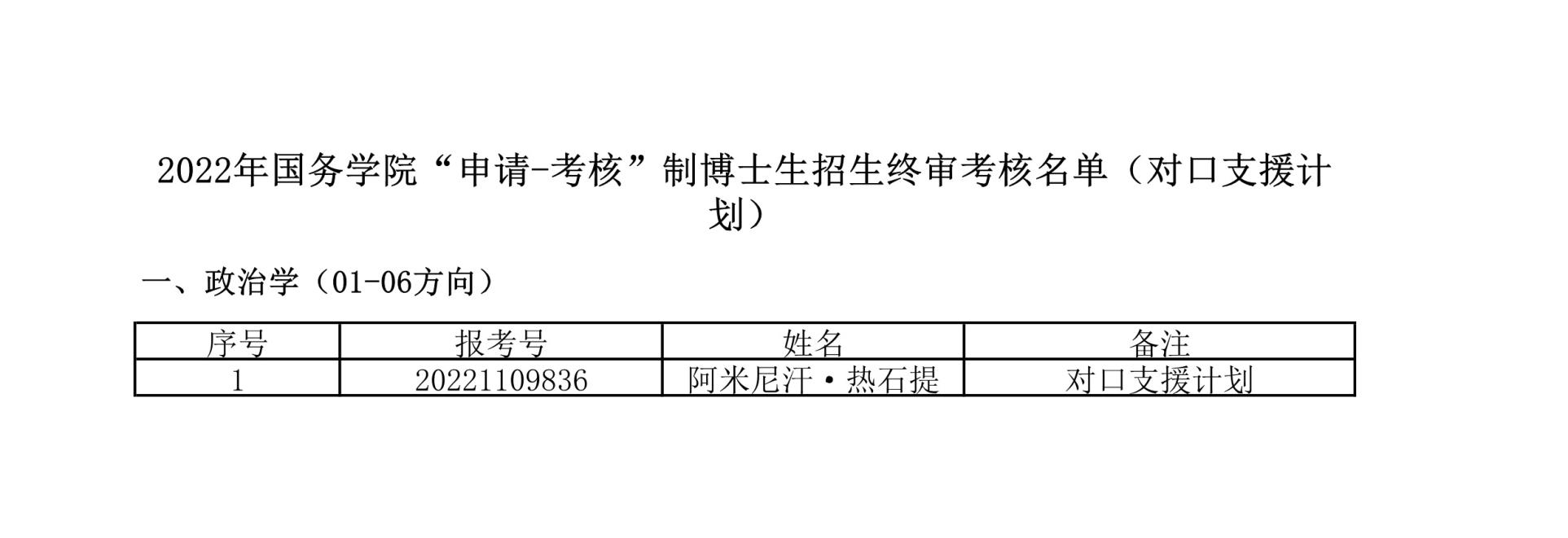 2022年国务学院“申请-考核”制博士生招生终审考核名单 (对口支援计划)